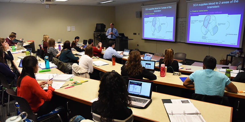 The Fort Wayne campus has computers available for student use in the library and the three designated study areas in the facility, also known as the Medical Education Center (MEC) on campus. The center maintains a small library in room 110 that has various reference textbooks and computer workstations. Computers can be used to print materials for class. Students may use printers for free. Wireless access is available on campus and ports are available at every workstation in the classrooms. Exams are taken on students’ personal laptops through Examsoft.
