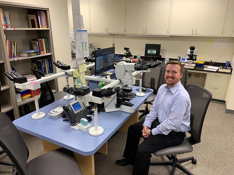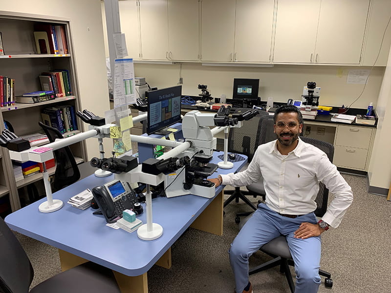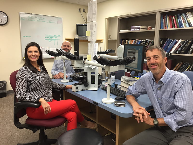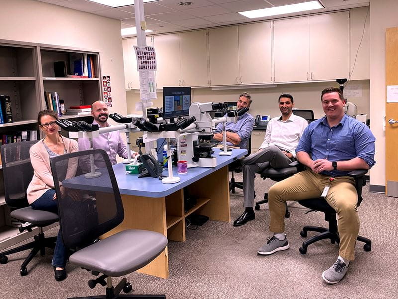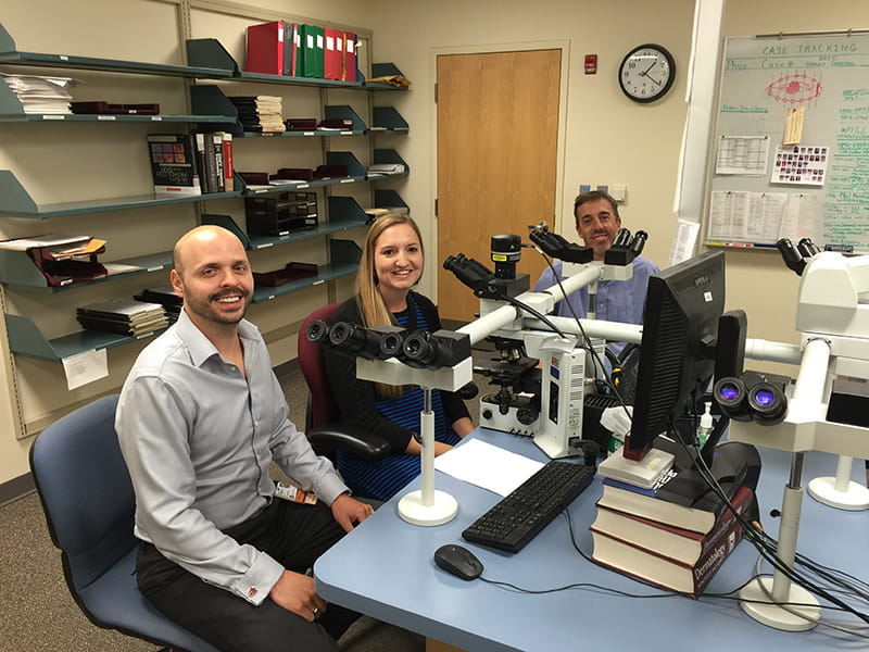The Division of Dermatopathology is housed in a world-class, dedicated core pathology laboratory that is located on the beautiful Indianapolis central canal and cultural trail. Cutaneous specimens (more than 17,000 cases annually) are received from the five hospitals on the academic health campus (Indiana University Hospital, Methodist Hospital, Eskenazi Hospital, Riley Children’s Hospital, and Roudebush Veterans Affairs Hospital), other hospitals in the state-wide IU Health network, and private dermatology practices. A robust volume of consultation cases are received from Indiana and surrounding states. Our in-house and consultation cases include a mix of challenging melanocytic neoplasms, rare superficial mesenchymal tumors, various cutaneous lymphomas and complex rashes.
