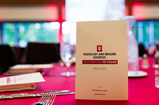 One of the greatest successes for the Department of Radiology and Imaging Sciences at Indiana University School of Medicine during 2022 was celebrating its 75th anniversary! Hundreds of faculty, staff, trainees, alumni and friends gathered to look back on how the department has grown and shaped the field of radiology. Due to the efforts of so many pioneering experts, the department has the foundation to grow in health care innovation and medical training for the next 75 years and beyond.